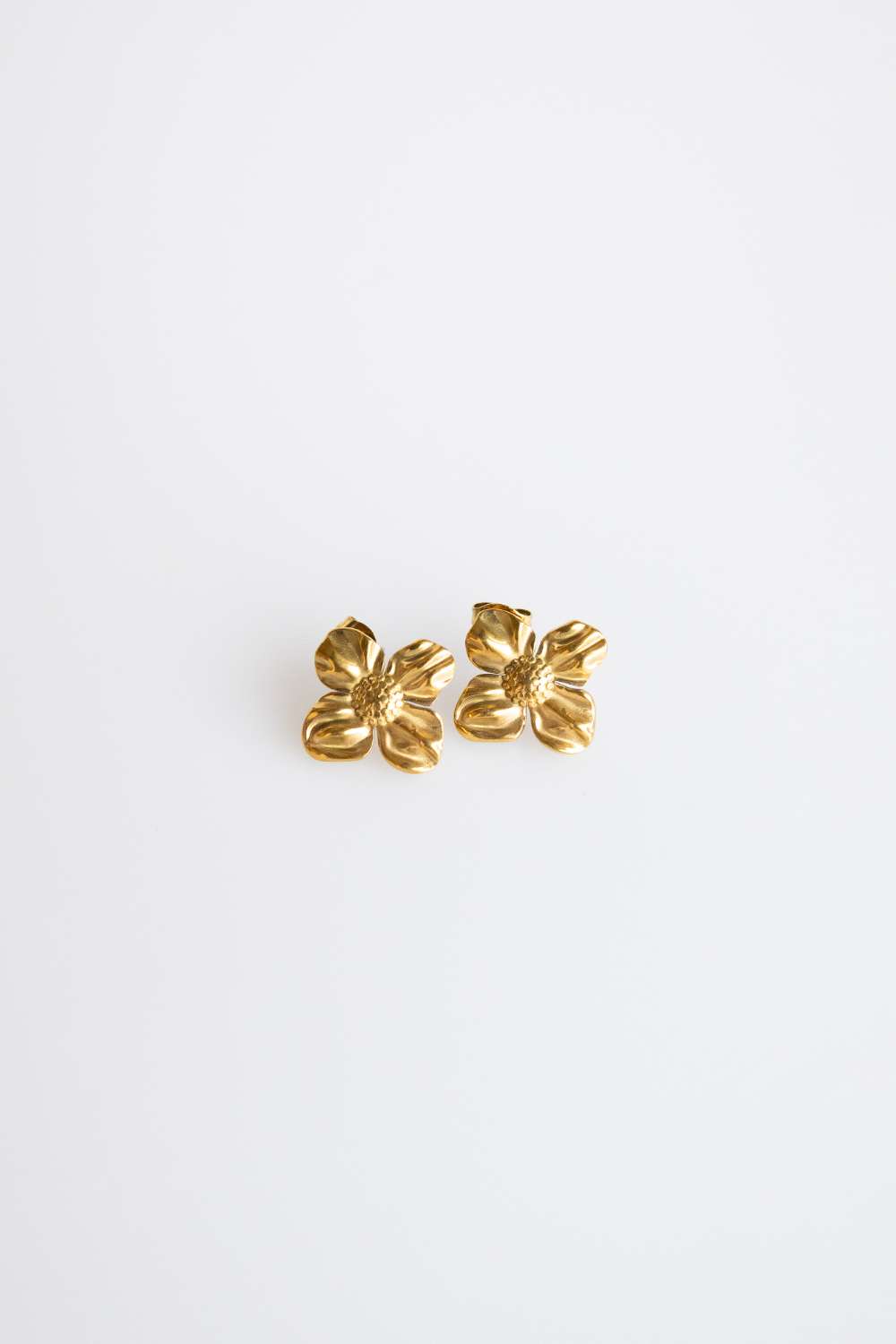 El Aro Flor Texturizada es un complemento distintivo con un diseño abierto que realza su estructura floral. Sus delicadas líneas y textura envolvente añaden un volumen sutil, adaptándose cómodamente al lóbulo y destacando en cualquier ocasión especial. Acero Inoxidable enchapado en Oro PVD.