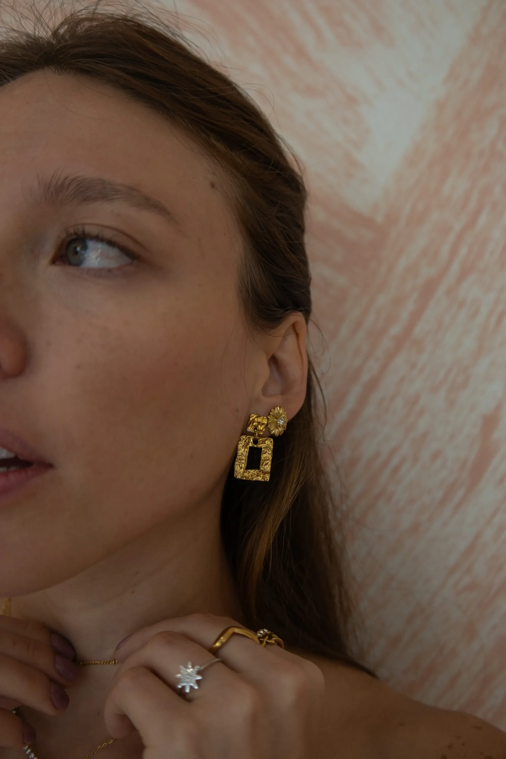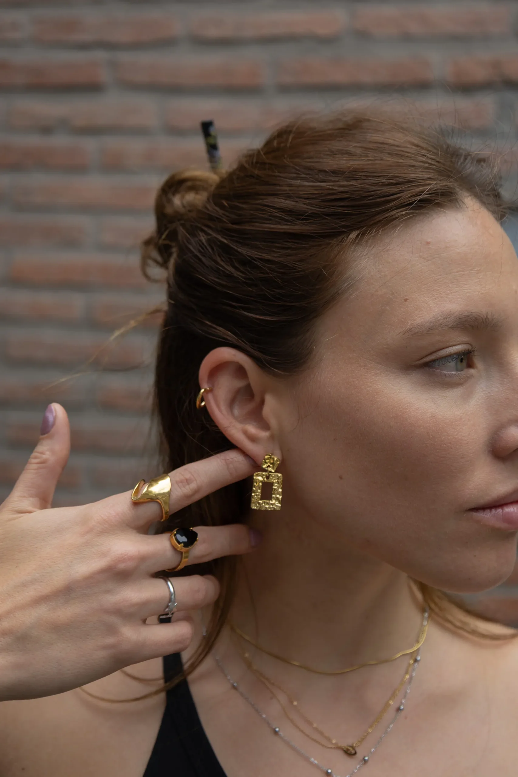 El Aro Textura Rectangular de Inaceli presenta un diseño geométrico que destaca por su estructura única. Su forma rectangular y su superficie con textura lo hacen resaltar al llevarlo puesto, ofreciendo un toque distintivo a quien lo luce.