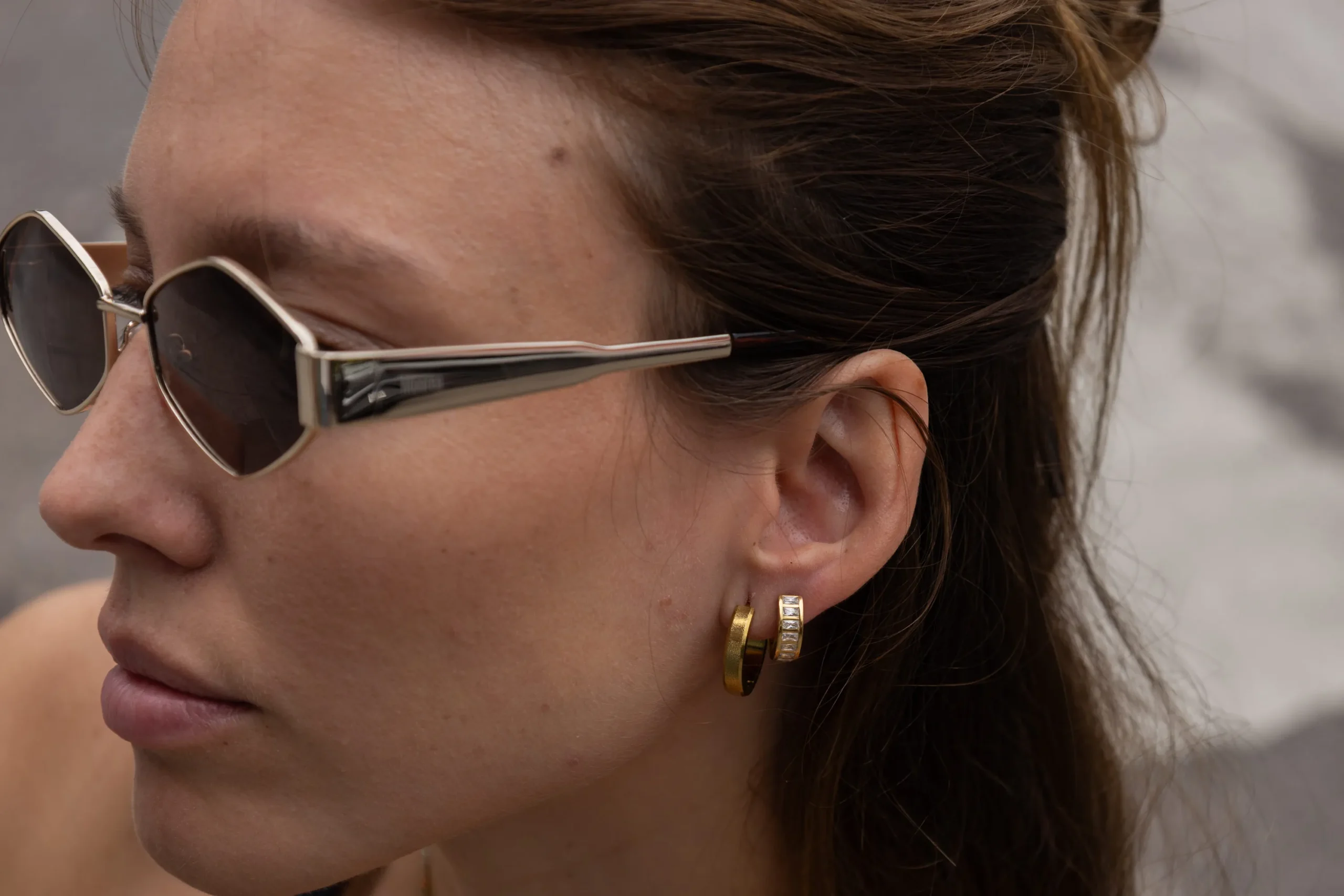 Los aros con brillantes de Inaceli presentan una forma redondeada que se adapta a la oreja, ofreciendo una estructura que destaca sin esfuerzo. Su diseño abraza suavemente el lóbulo, proporcionando un toque distintivo que realza cualquier look.