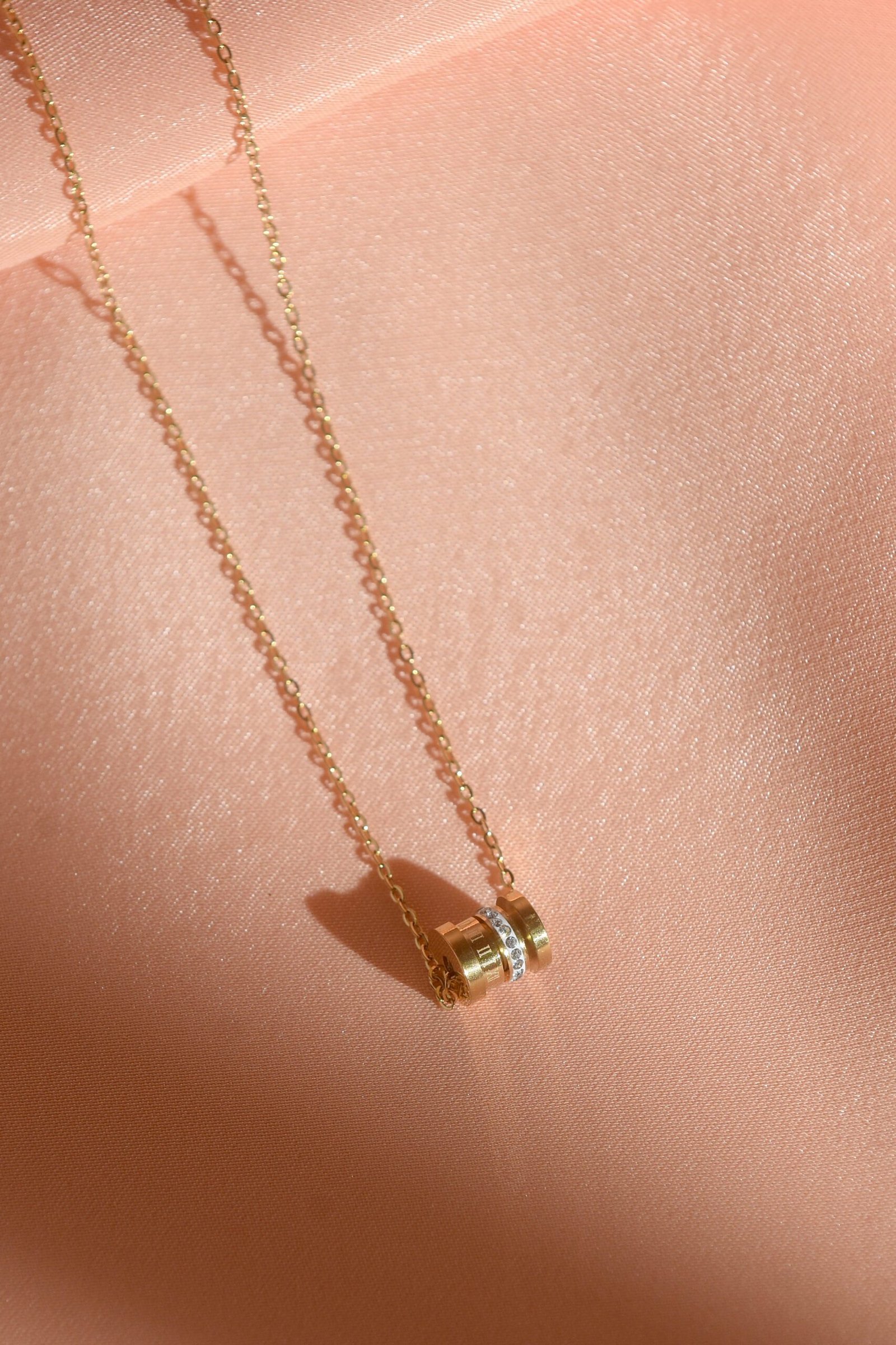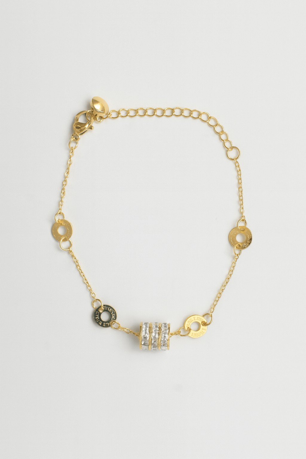 [vc_row][vc_column][vc_column_text css=»»]Pulsera elegante y sofisticada con un diseño de cadena fina en acero inoxidable. Destaca por sus delicados dijes circulares y un elemento central deslumbrante: un cilindro completamente cubierto de brillantes zirconias engastadas. Cuenta con un cierre de mosquetón y una cadena extensora para un ajuste perfecto a cualquier muñeca. Ideal para añadir un toque de lujo sutil a tu look diario o para complementar atuendos de noche.[/vc_column_text][/vc_column][/vc_row]